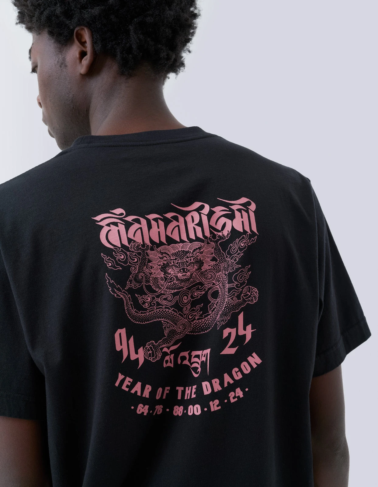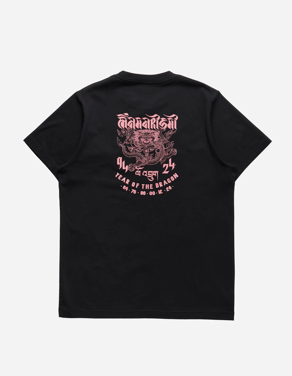 Short sleeve tee with dragon back print by guest artist Tashi Mannox, created as a celebratory insignia of Maharishi’s 30 year anniversary.