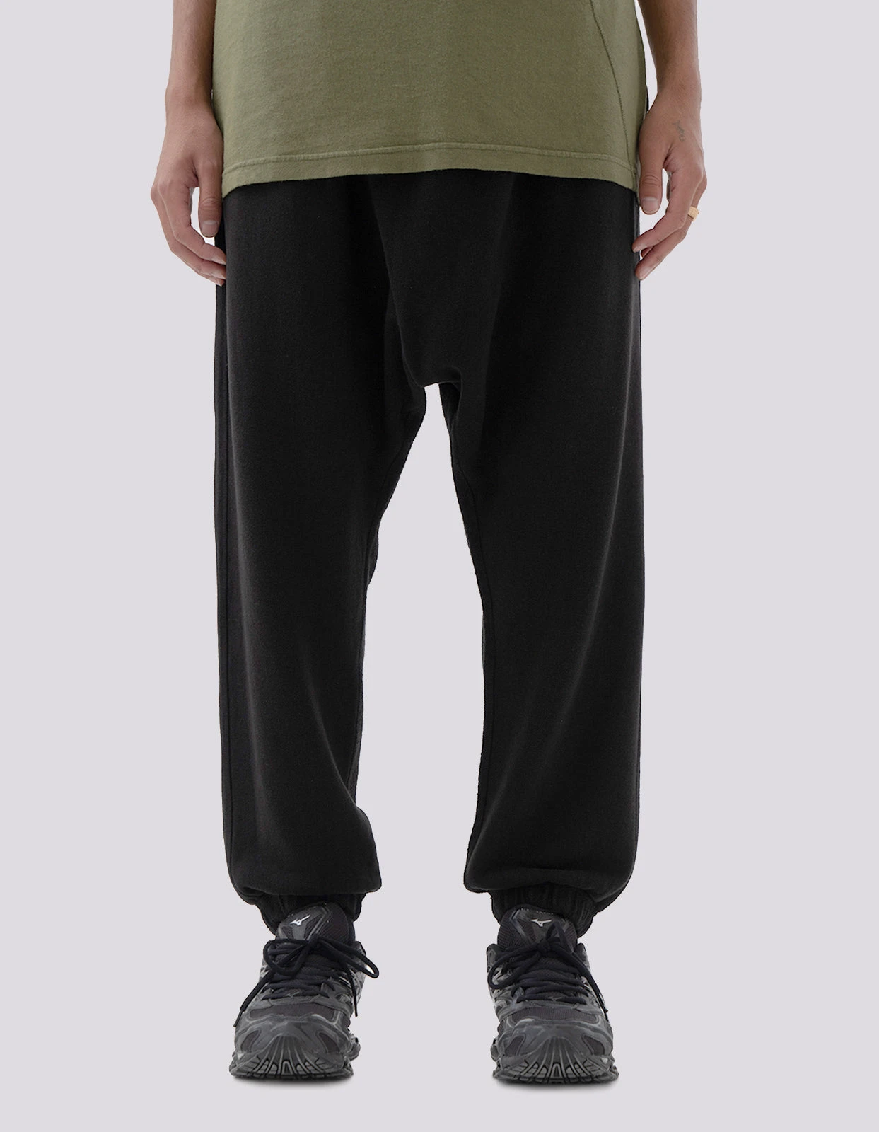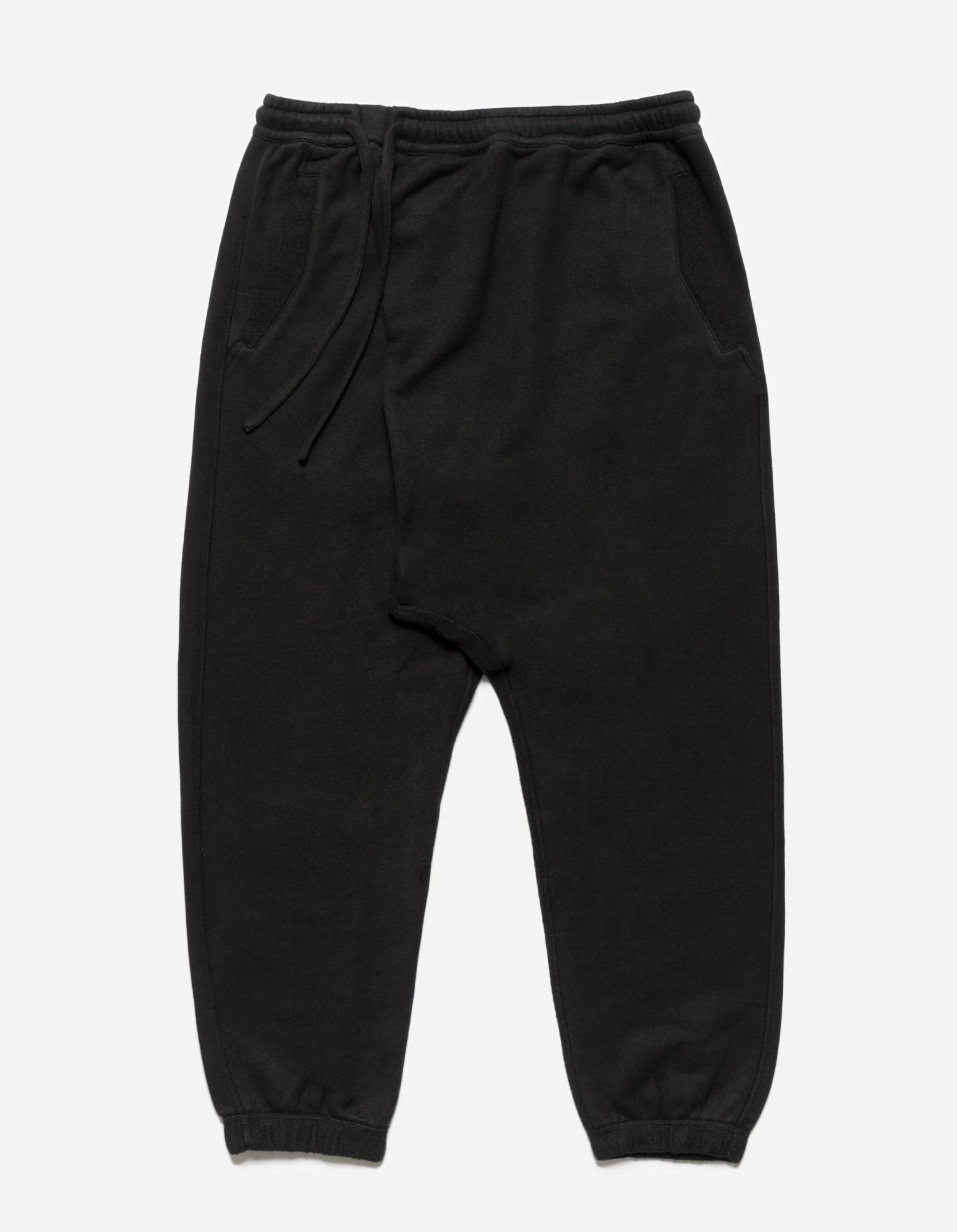 Dropped crotch sweatpants are constructed from an eco-conscious hemp cotton blend, feature panels of inverted loopback jersey and garment dyed for a soft worn in finish.