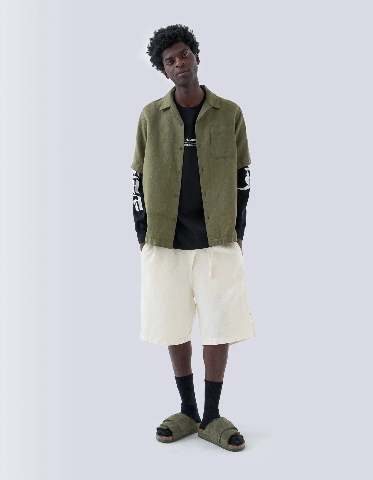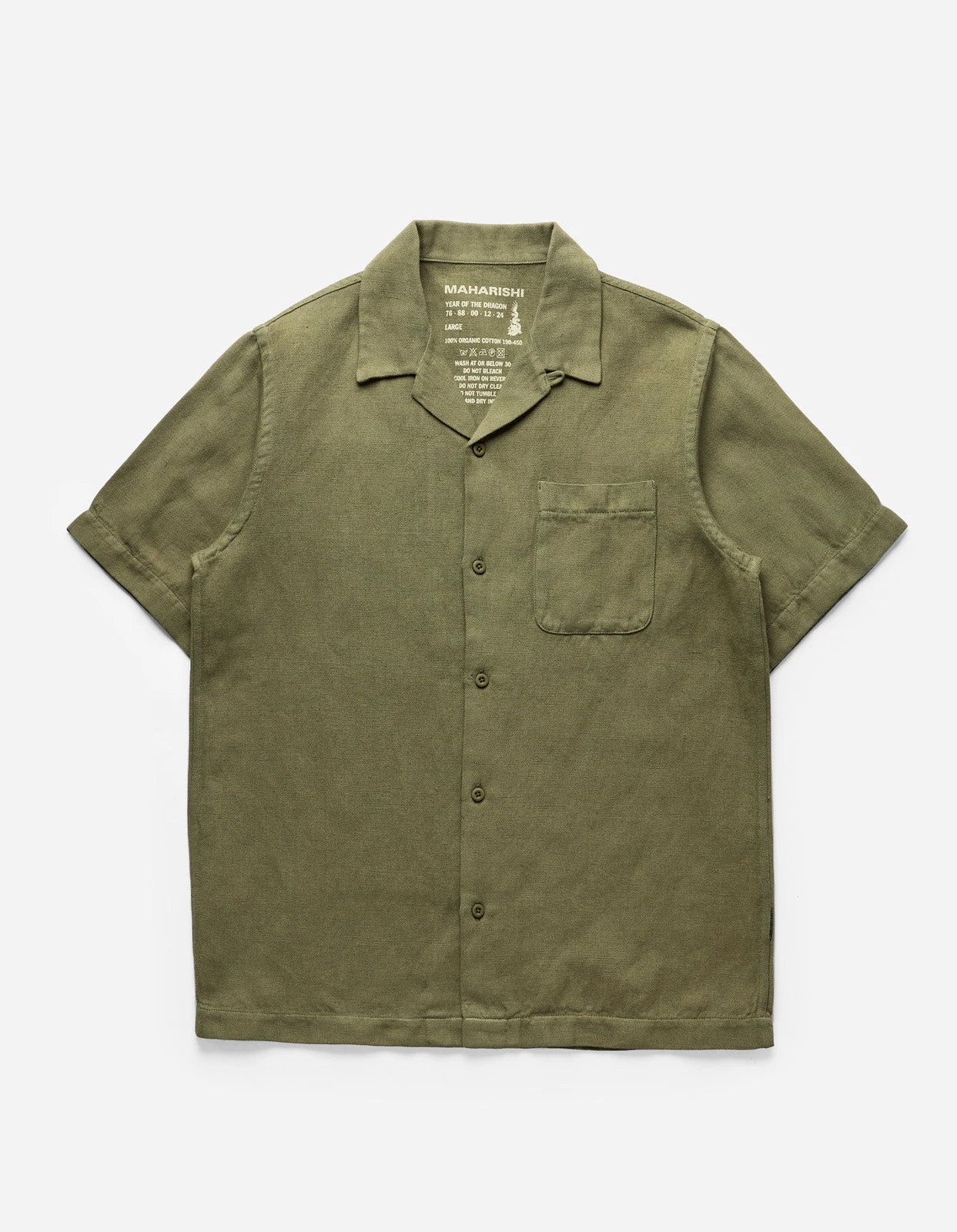 Relaxed fit short sleeve shirt with a double notched camp collar and patch pocket, made in a lightweight textured hemp