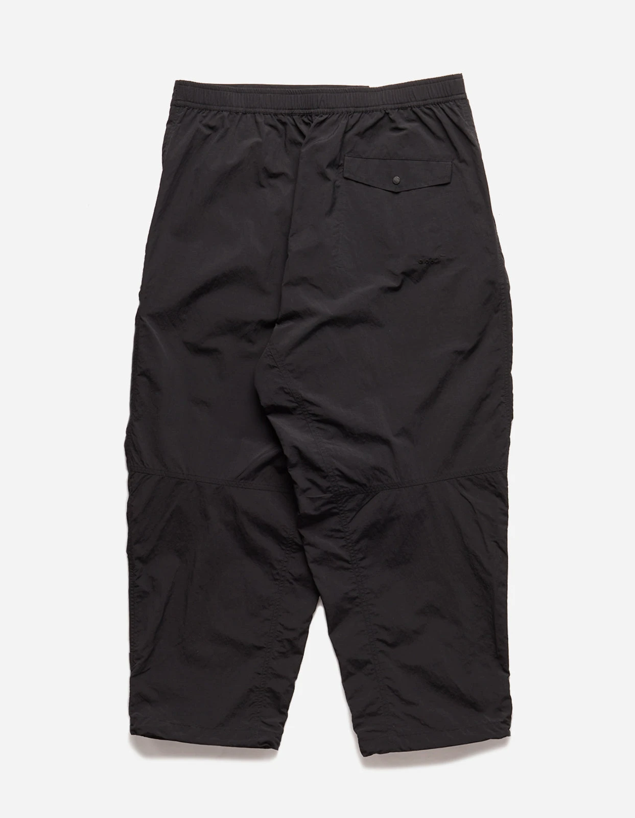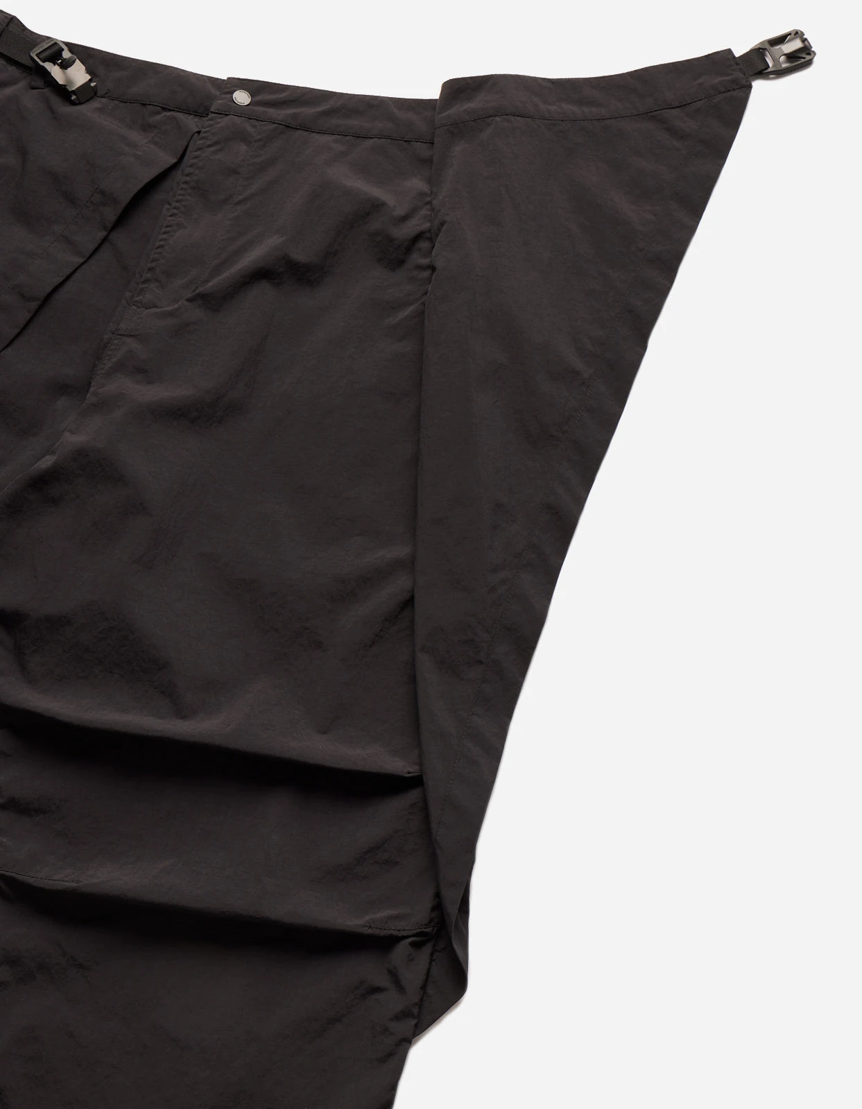Hakama-styled track pants feature a layered panel design with integrated belt system and preformed leg shape for knee articulation.