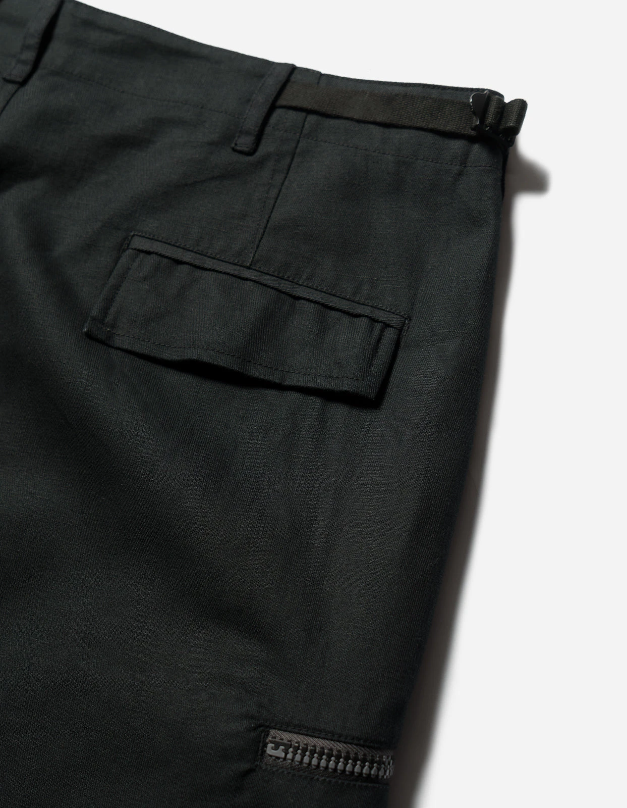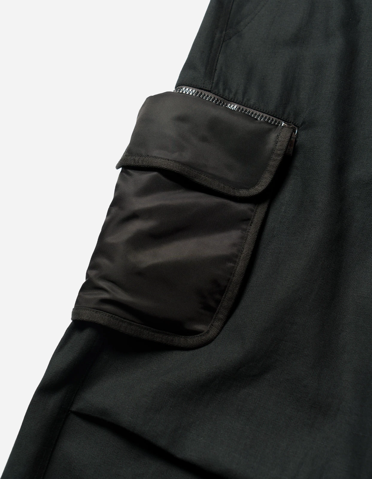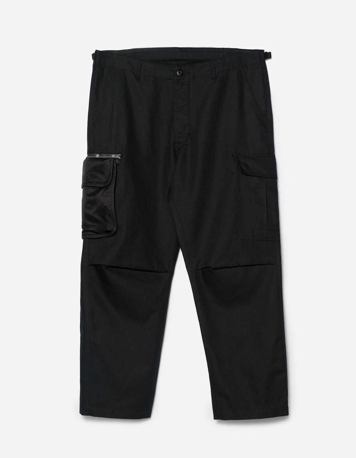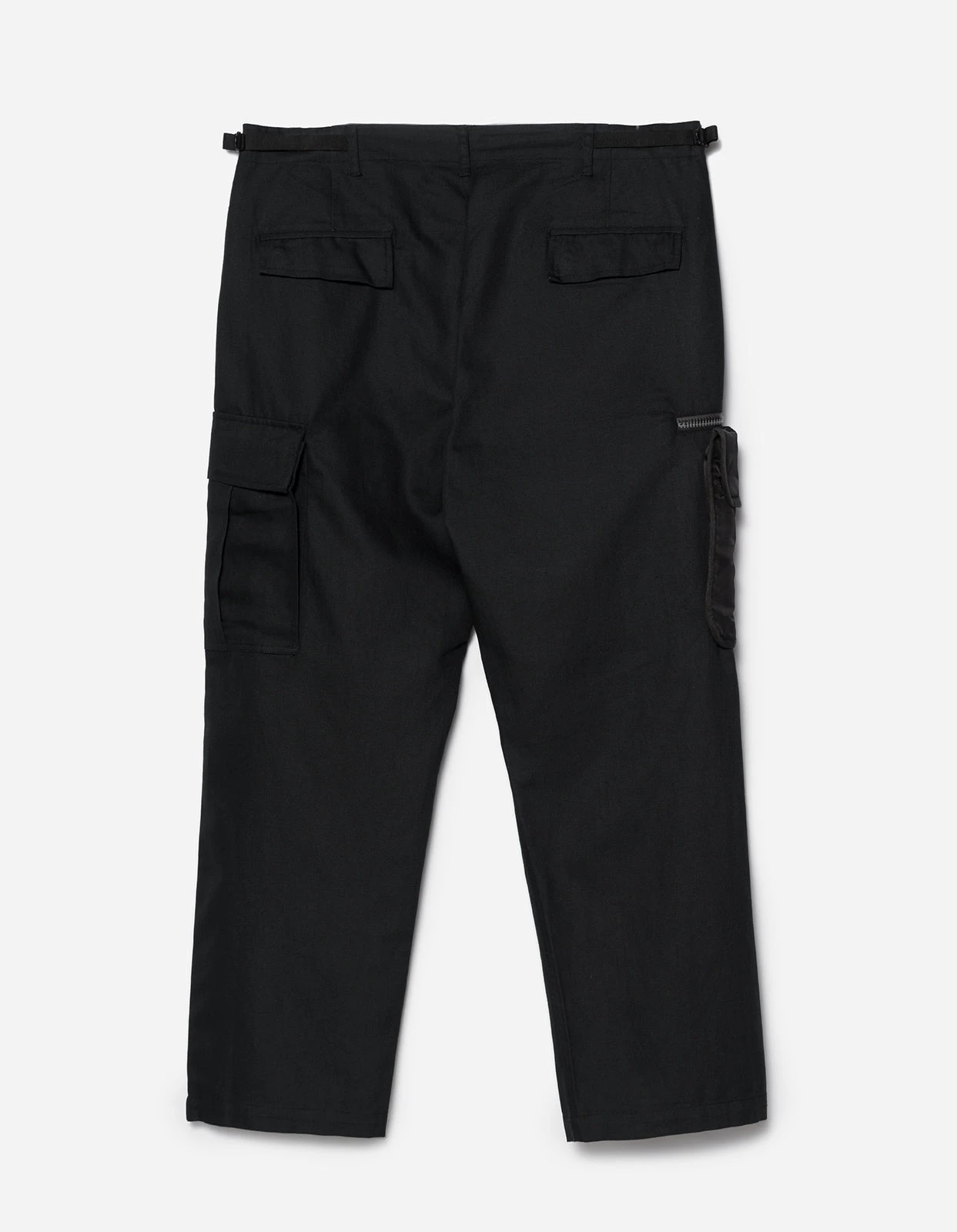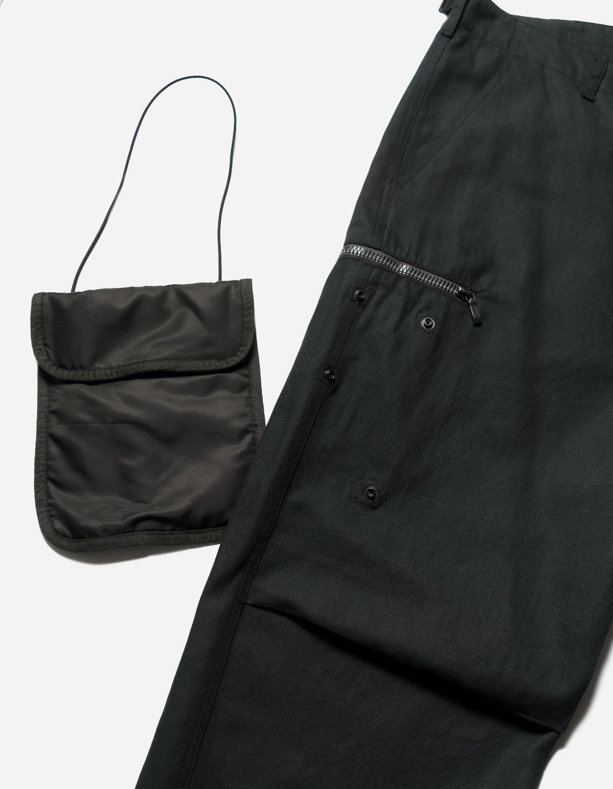 Loose fit cargo pants feature a detachable pocket bag with Snocord strap. Cut in a hemp cotton twill, that combines comfort with durability.