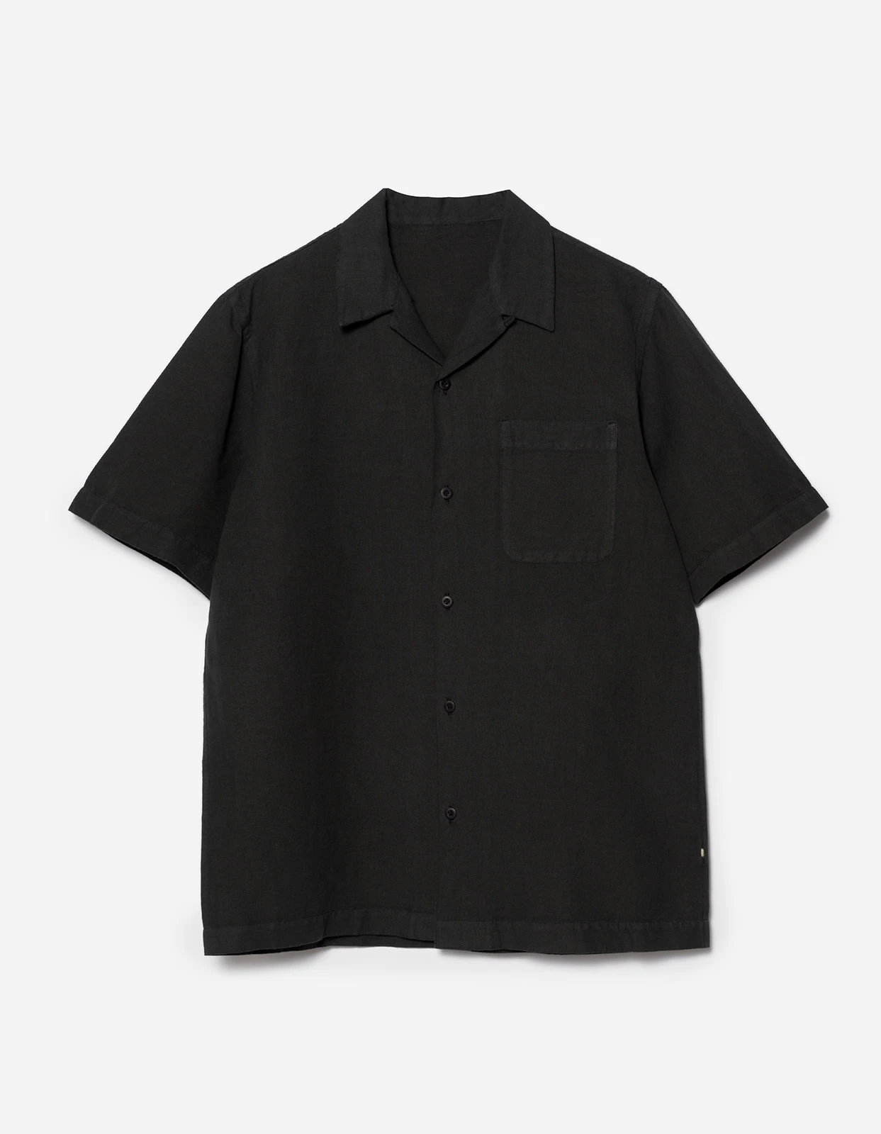 Relaxed fit short-sleeve shirt with a double notched camp collar and patch pocket, made in a lightweight hemp cotton.