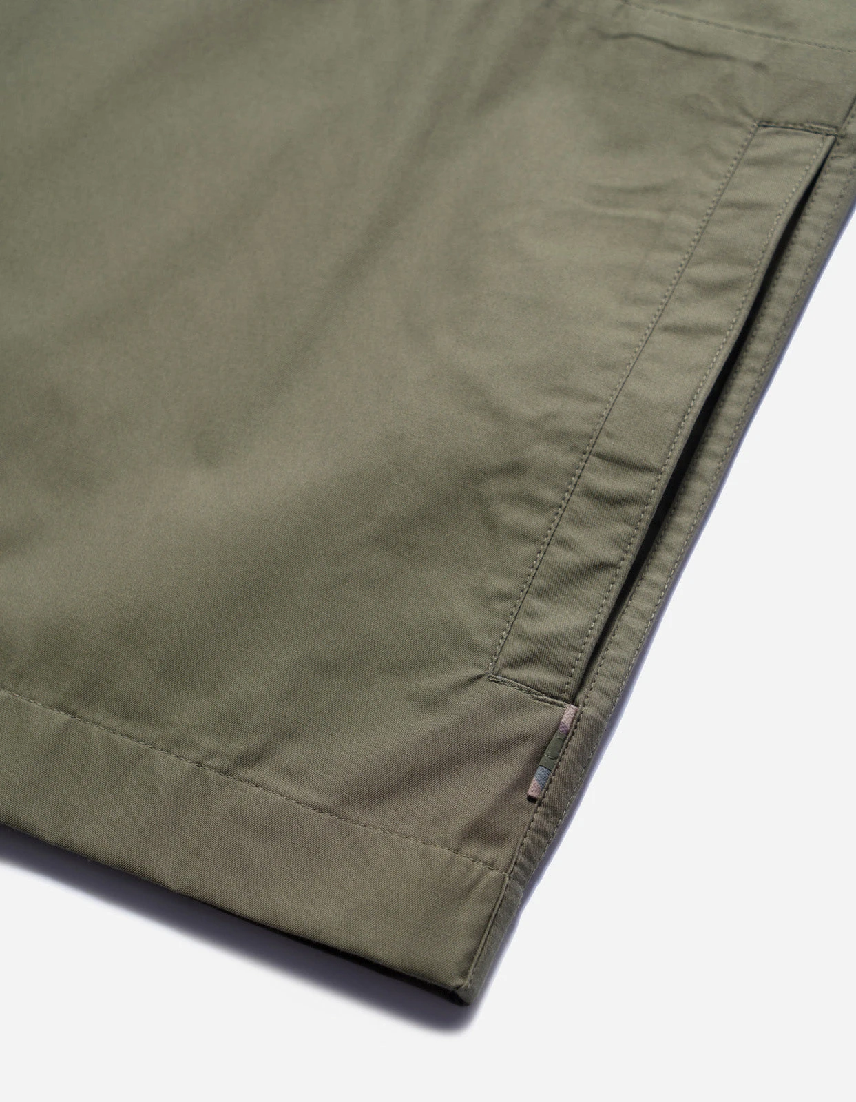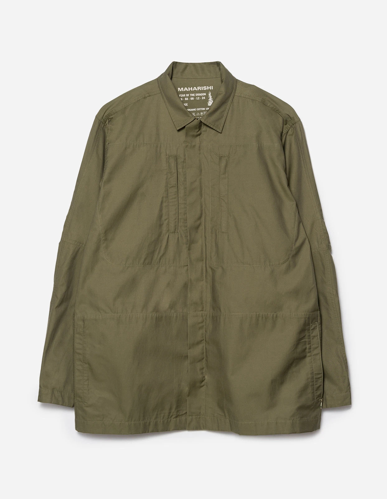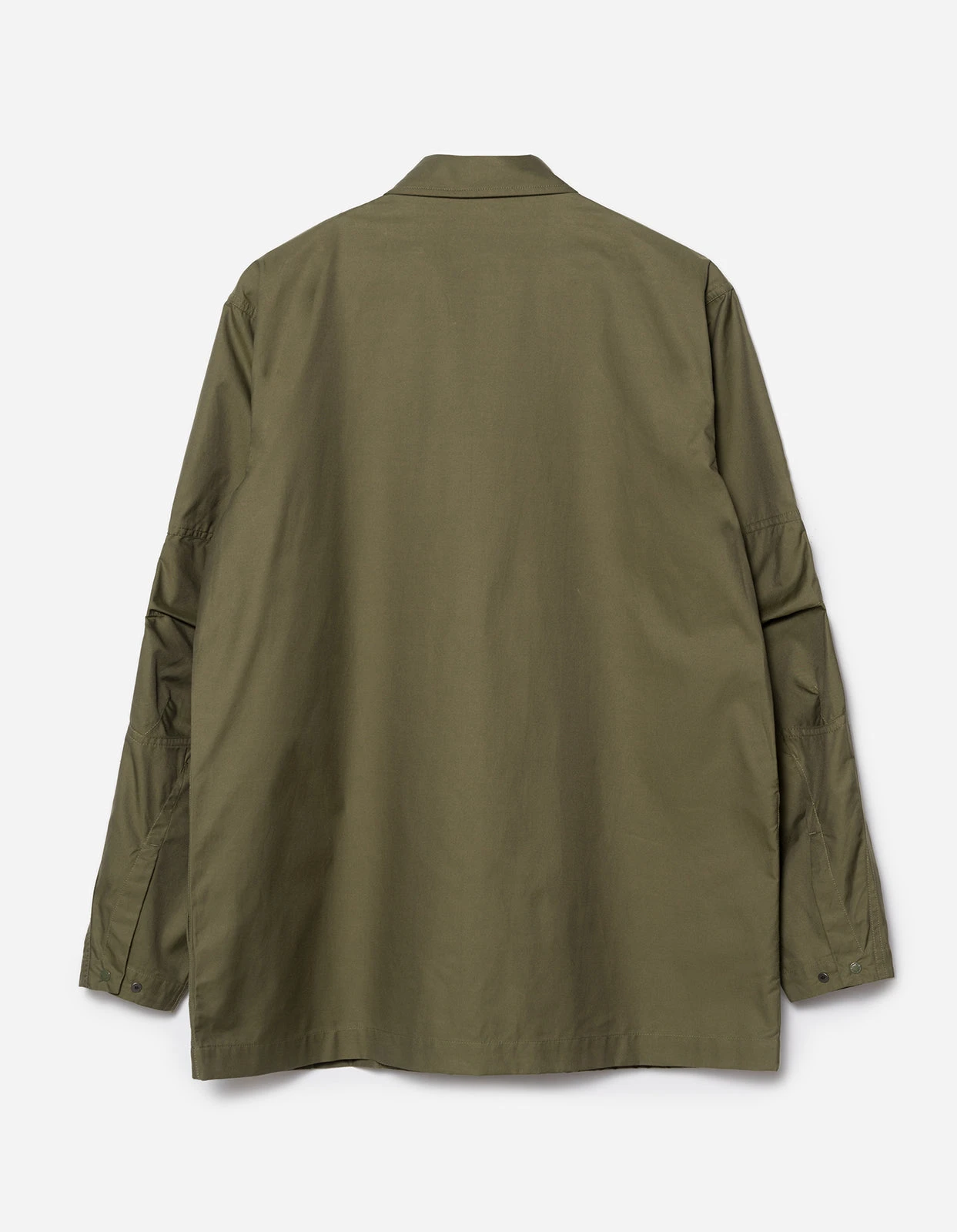 Relaxed fit trekking shirt of lightweight cotton-poly. Secure Napoleon style zip pockets and articulated sleeve pattern.