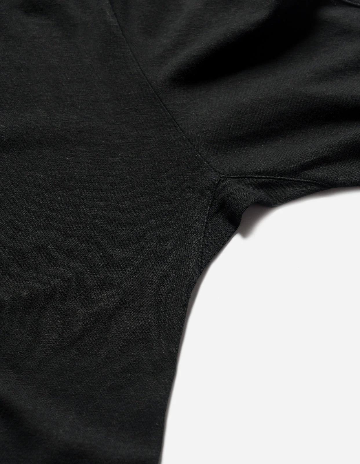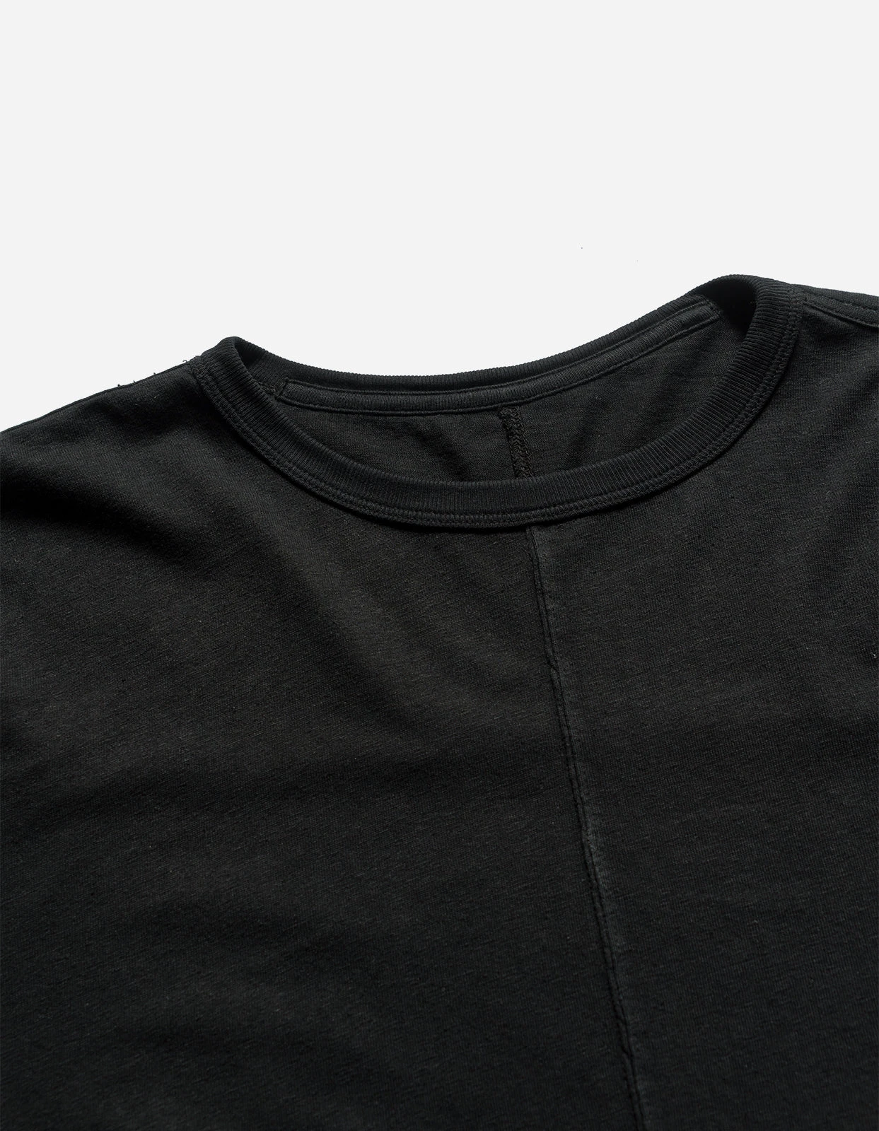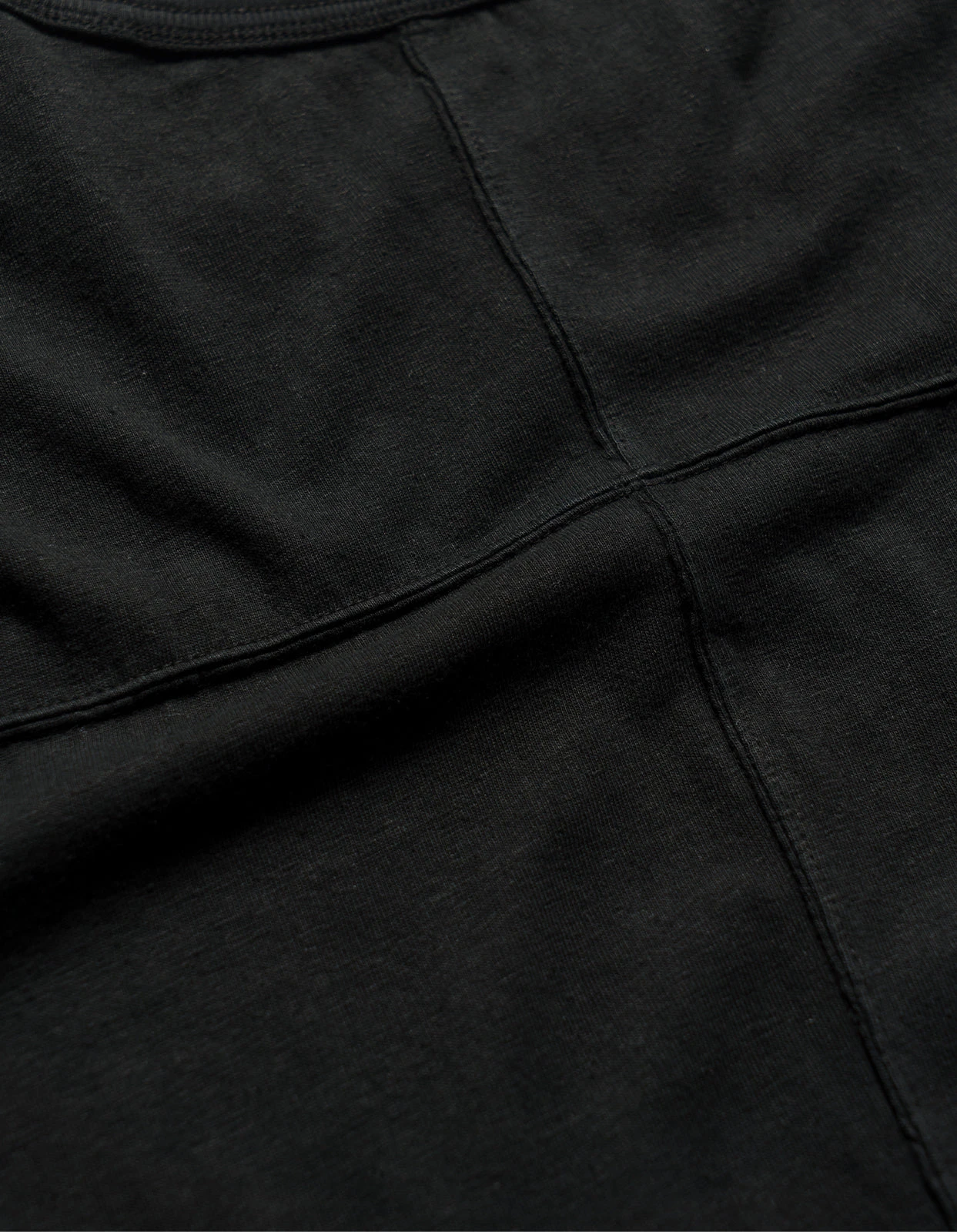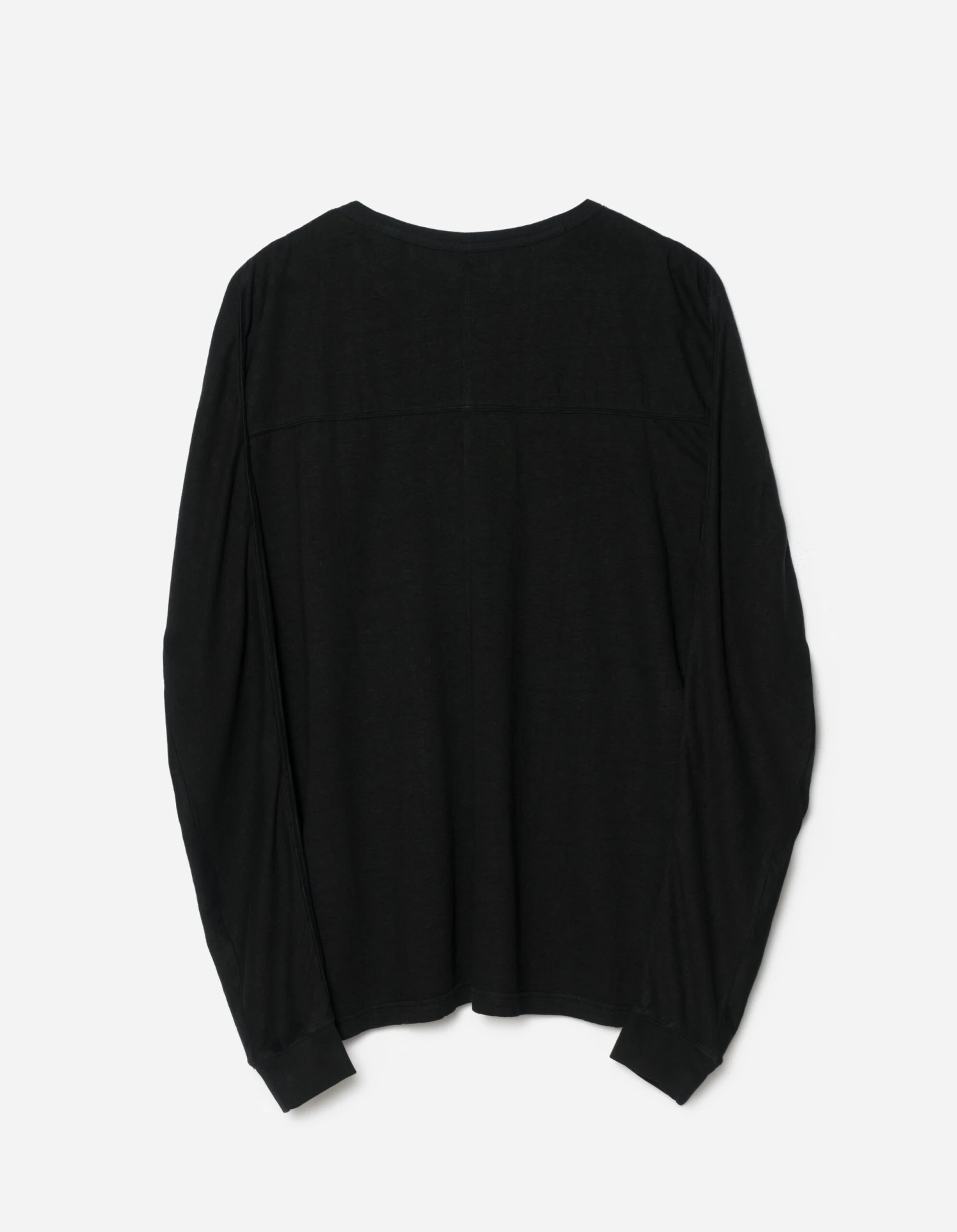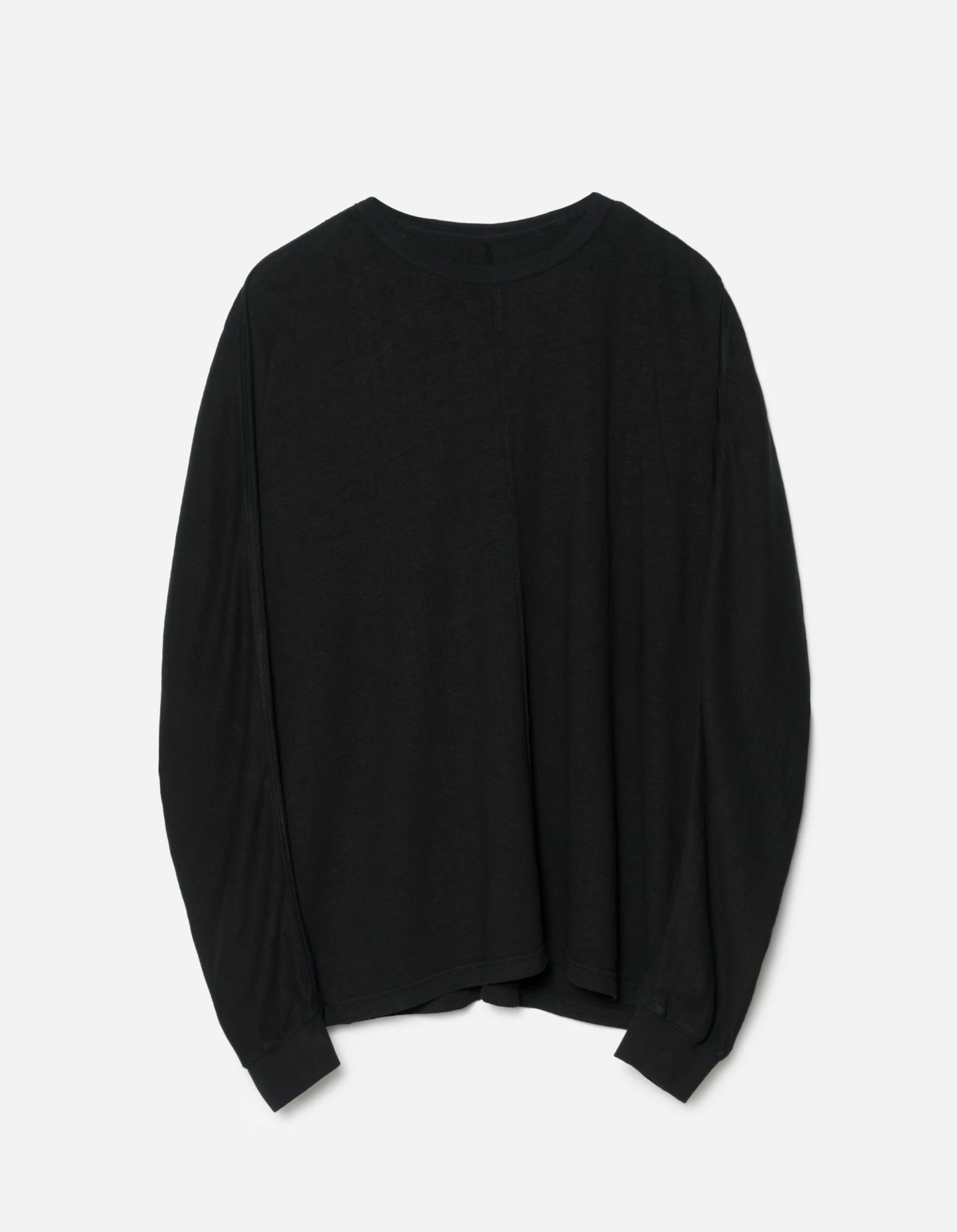 Long sleeve t-shirt in elongated cut, constructed from an eco-conscious hemp/cotton blend and stonewashed for a soft and worn-in finish. Stylized contrast seams on both sides exposing the cut & sew nature of the garment.
