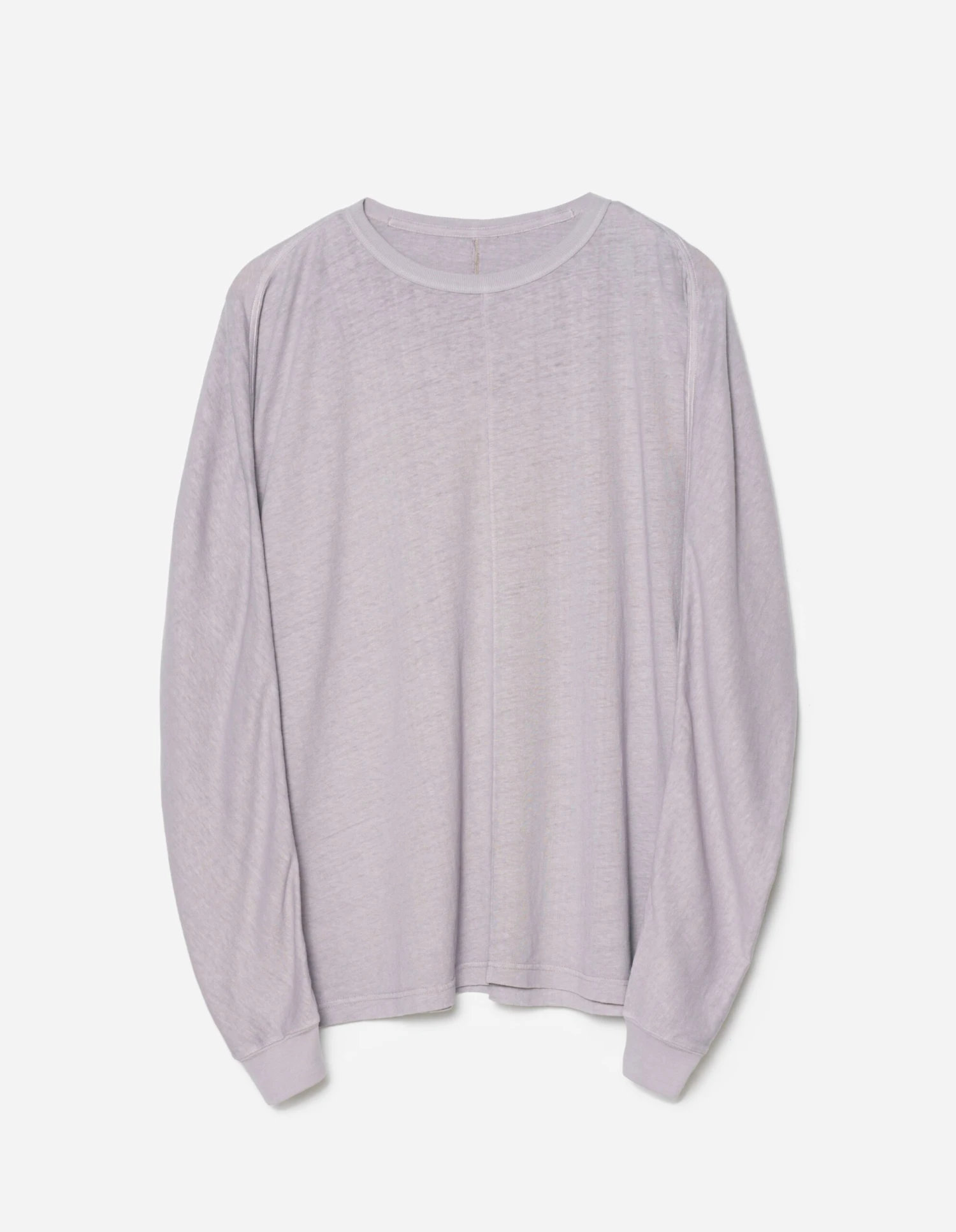 Long sleeve t-shirt in elongated cut, constructed from an eco-conscious hemp/cotton blend and stonewashed for a soft and worn-in finish. Stylized contrast seams on both sides exposing the cut & sew nature of the garment.