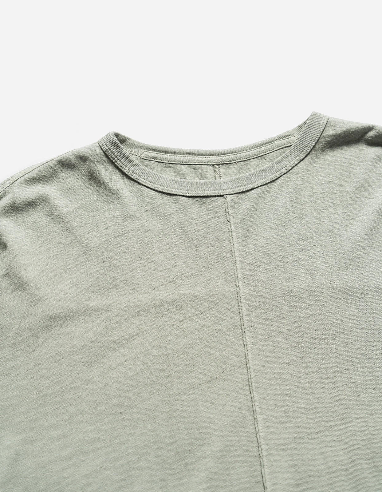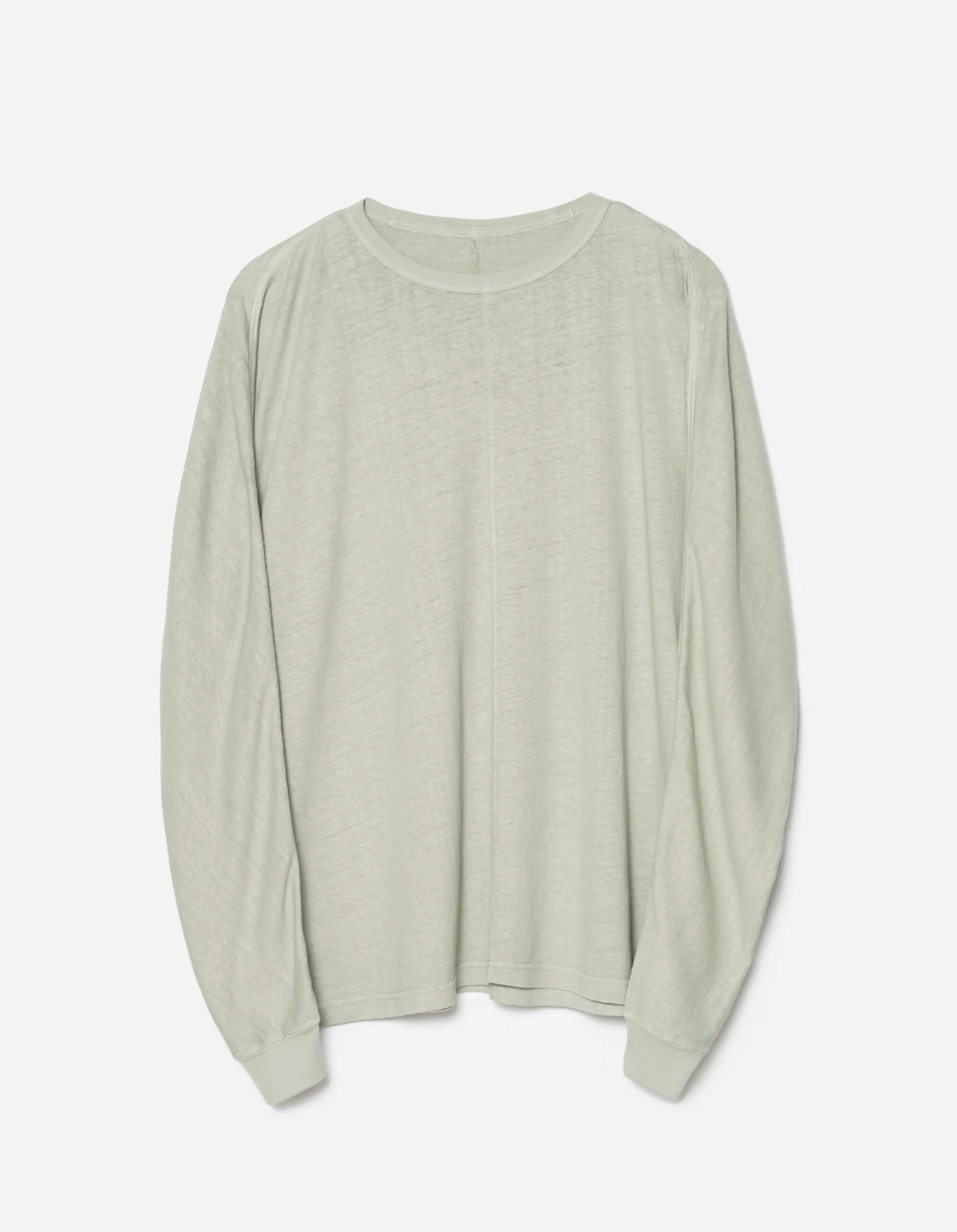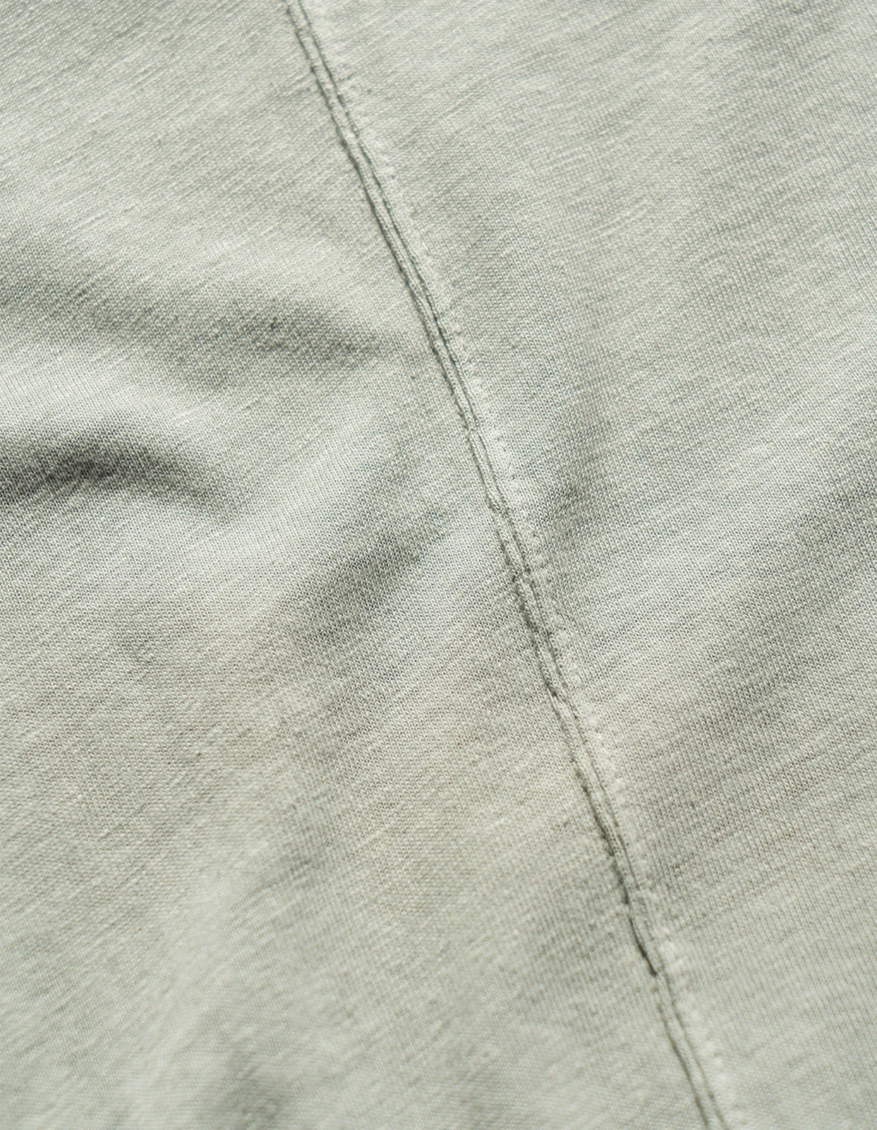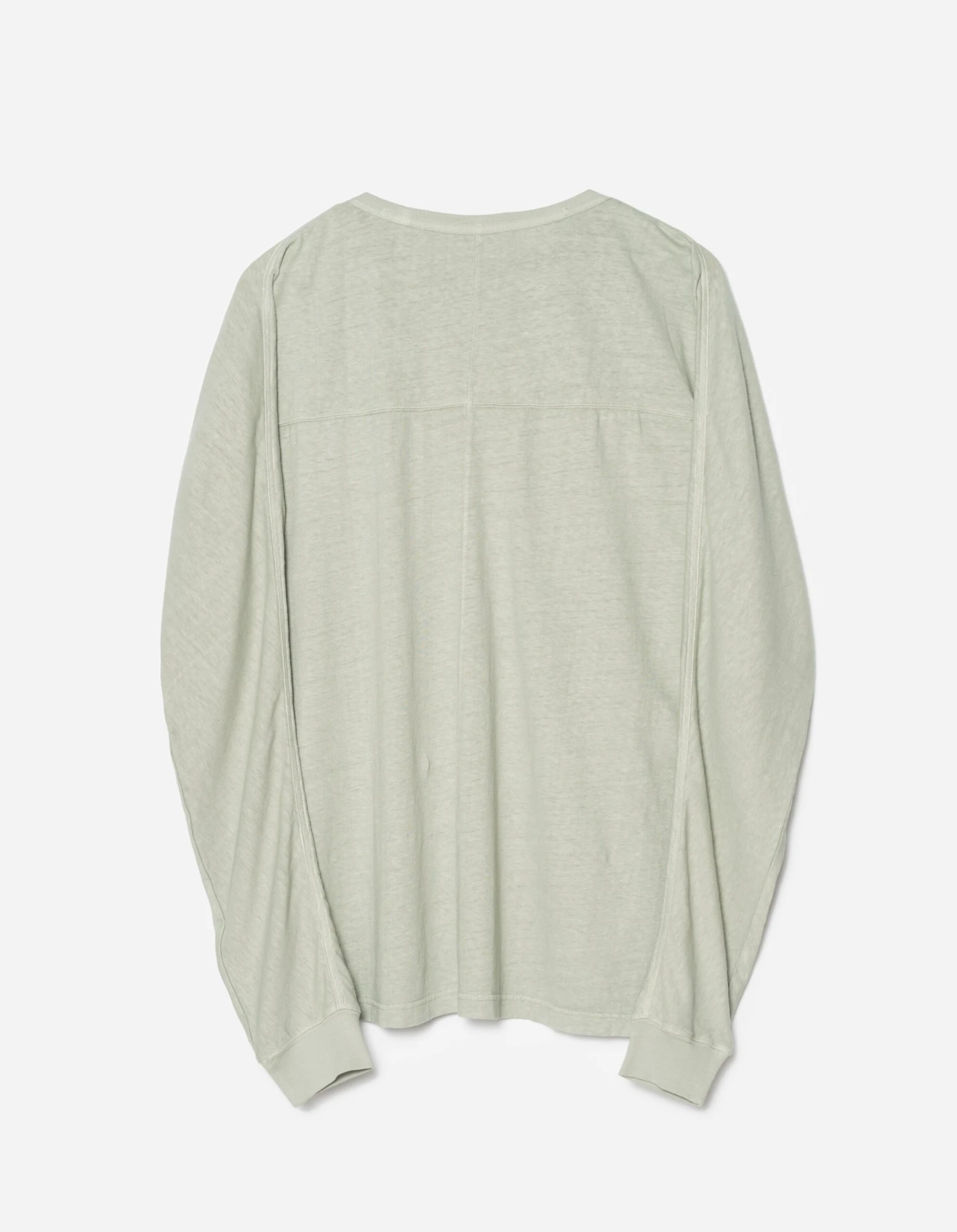 Long sleeve t-shirt in elongated cut, constructed from an eco-conscious hemp/cotton blend and stonewashed for a soft and worn-in finish. Stylized contrast seams on both sides exposing the cut & sew nature of the garment.