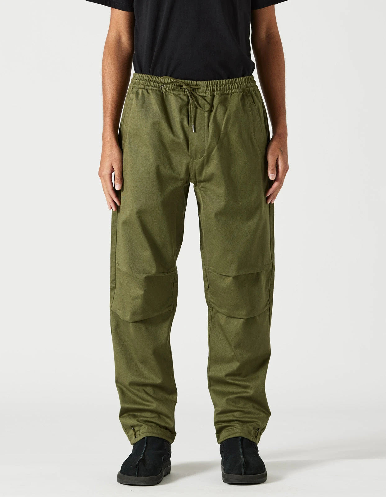 Olive track pants cut for a tapered fit, utilising a preformed leg for full range of motion, drawcord and Snocords® also allow for full adjustment at the waist and hem.