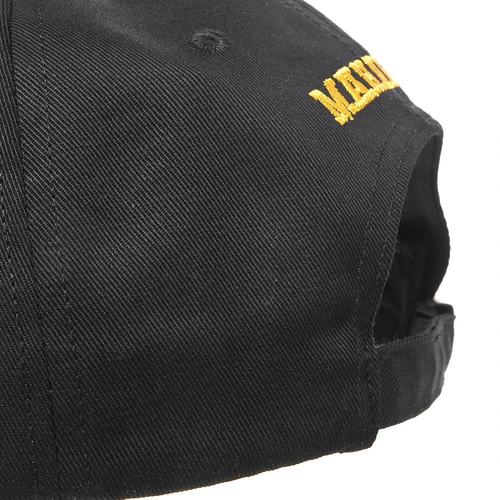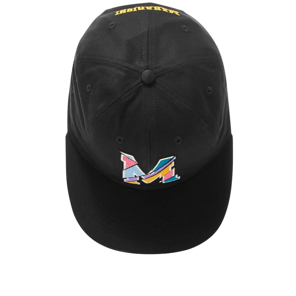 Elevate your street look with this black cap from Maharishi. Made from cotton twill, it shows off a six panel silhouette with an adjustable back tab for a customisable fit and is complete with a multicoloured ‘M’ branding at the front for a vibrant touch.